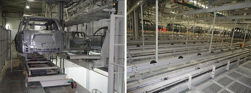 It is mainly used to transport the body transported by the welding adjustment line to the painting workshop; store the welded body to ensure that the production capacity of the painting workshop and the welding shop are different, which affects the production capacity of the coating; For the classification and storage of the models, the paint shop can produce different models according to the sales situation.