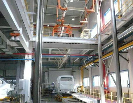 Light-duty truck technical transformation project painting production line engineering mechanized conveying system - ground skid conveying system includes rolling bed, single-chain conveyor, process double-chain conveyor, moving machine, elevator, stacking/demolition machine for the production of ground workpieces on the production line, Fork shifters, pre-treatment skids, topcoat skids and their electrical control systems.