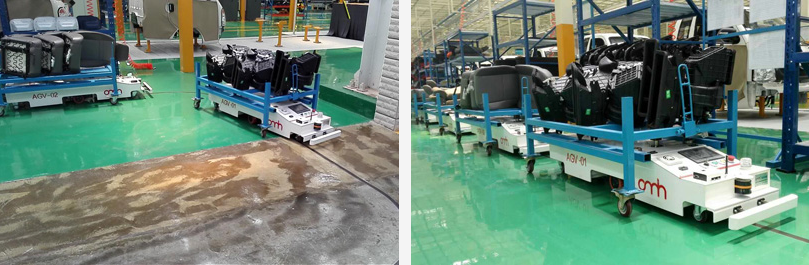 Yunnan Lifan Junma Vehicle Co., Ltd. mainly produces light trucks and heavy trucks. The AGV project is used for the distribution of line side materials and empty material trucks in the assembly shop to meet the 40JPH beat of the production line. AGV adopts the track navigation system and realizes unmanned automatic transportation through the instant communication of the control system with other management systems. It is the choice for the automotive industry to enhance the competitiveness of the industry, reduce labor costs and improve the efficiency of warehouse allocation.